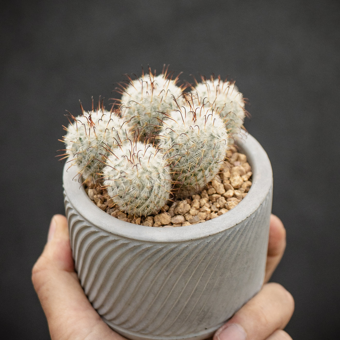 In a cement pot by Prickly Point This species grows primarily during the warm, rainy summer months. It is notoriously slow-growing and sensitive to excess moisture, requiring a strictly dry, cool winter dormancy to prevent rot and encourage spring flowering.
